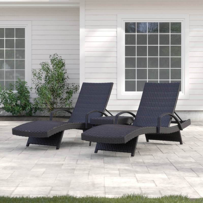 All Weather Wicker Chaise Lounge Set with Table