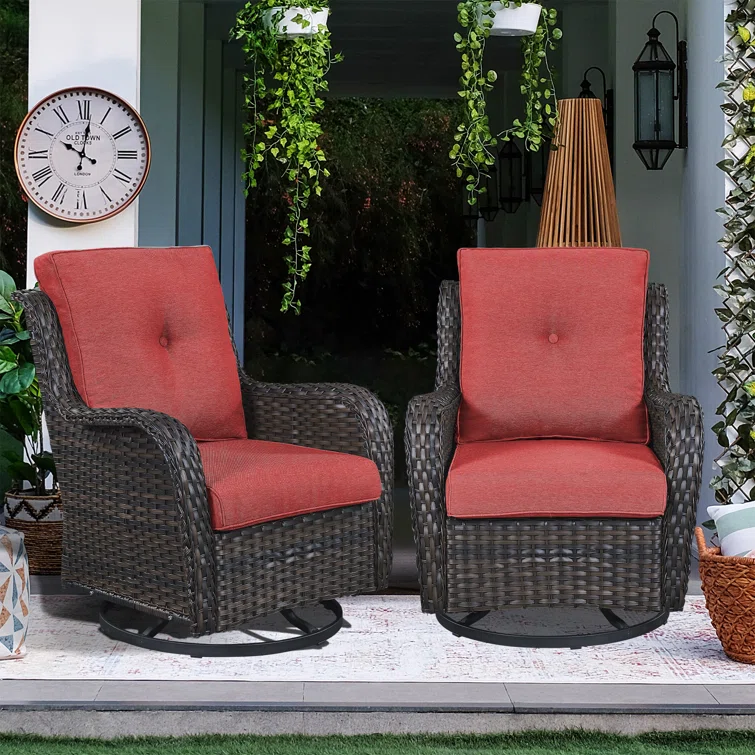 Linkwood Rocking Swivel Patio Chair with Cushions (Set of 2)