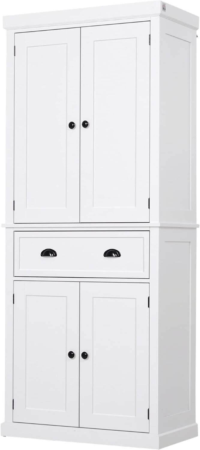 72" Traditional Freestanding Kitchen Pantry Cupboard with 2 Cabinets
