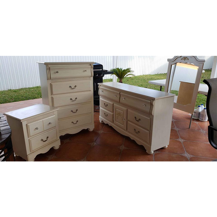 Set includes dresser, mirror, chest, nightstand and headboard
